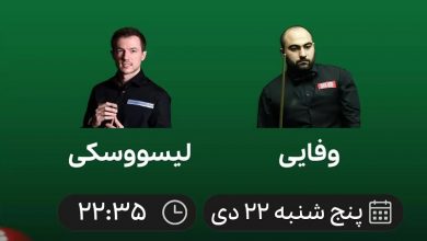 پخش زنده اسنوکر مسترز جهان ۲۲ دی ۱۴۰۱ ؛ حسین وفایی و لسووسکی