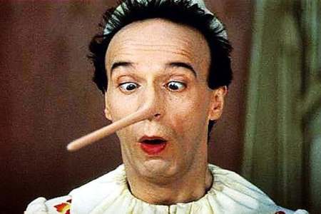 دستهای کوتاه، زبان باز و بینیِ چوبیِ دراز