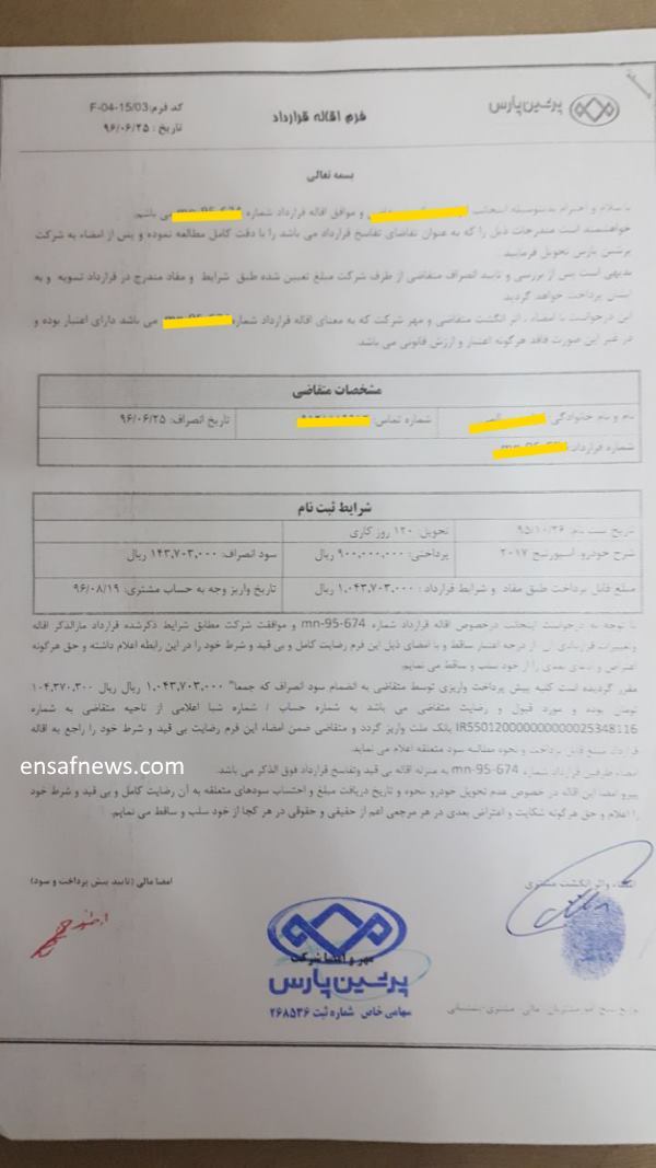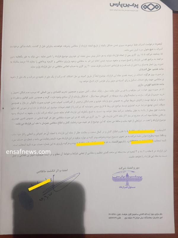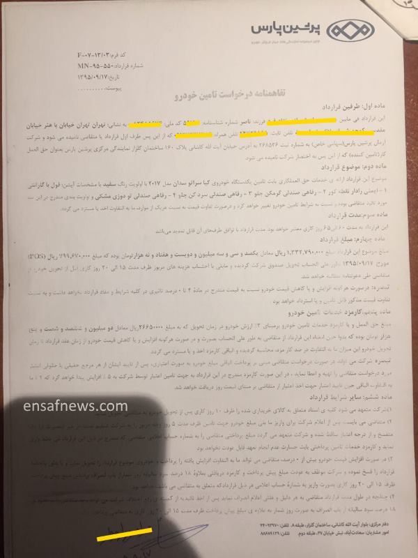 6. انصاف نیوز مدارک ۷۱ نفر الان دست منه که نمایندشون شدم از سال ۹۵ ماشین ندادن پولم نمیدن. اگر مایلید براتون بفرستم ایمیل بزنید . قراردادها. اقاله ها. فیشهای واریزی. و…