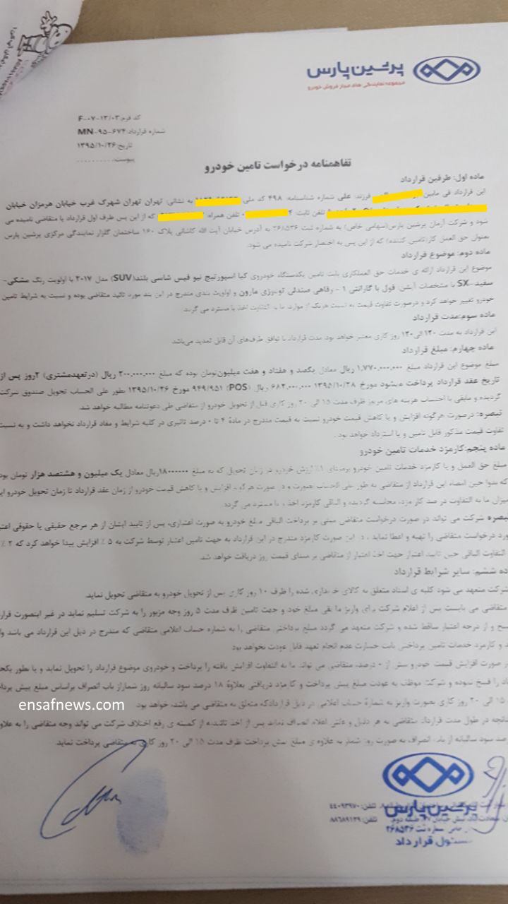 اصلا قراردادا رو ببینید شوکه میشید. یکی هست یه خودرویی رو نوشته تو اپشناش نوشته با سقف پانارونا جالبه اون خودرو اصلا سقف پاناروما نداره. ..