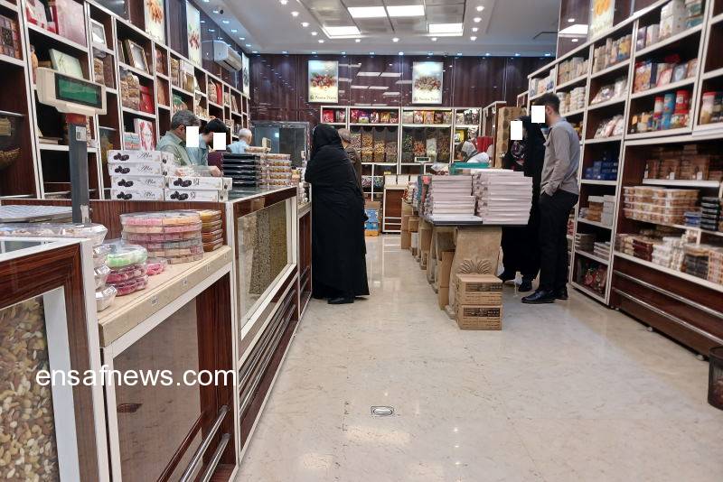 فضای کلی قنادی‌ها و مغازه‌های فروش خشکبار و آجیل، در عرض چند دقیقه ایستادن این‌طور است: خلوت، راکد و آرام. بعضی از فروشنده‌ها حتی اجازه‌ی عکس‌برداری هم به خبرنگار نمی‌دهند و آن را وابسته به اجازه‌ی صاحب مغازه می‌دانند! صاحب مغازه هم که معمولا در بیشتر مغازه‌ها نیست.
