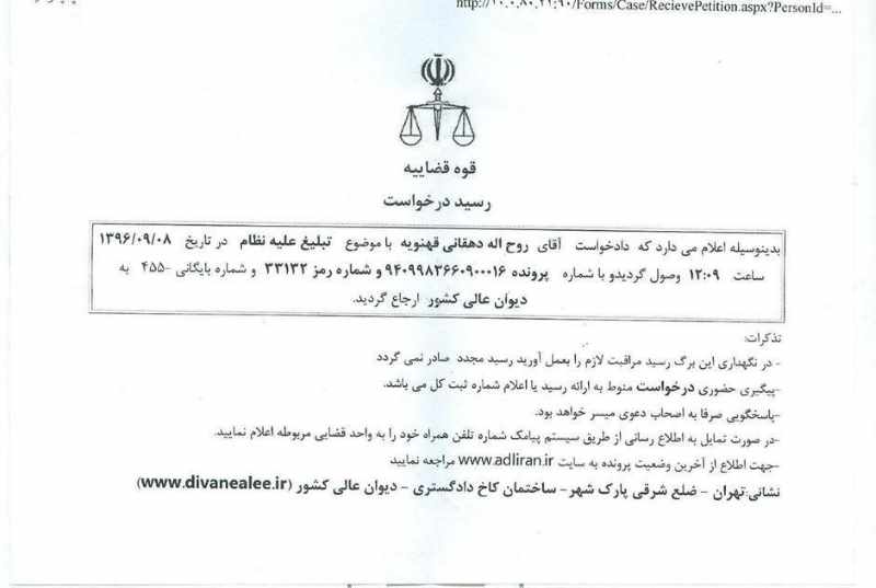 دهقانی در مورد حکم یک سال حبس تعزیری خود توضیح داد:«در دادگاه اولیه به یک سال حبس تعلیقی به جرم تبلیغ علیه نظام محکوم شدم اما با اینکه حکم صادر شده بود من از آن خبر نداشتم تا اینکه بعد از یک سال احضاریه‌ی دادگاه تجدیدنظر آمد. این عمل  خلاف قانون است چراکه شاکی و متشاکی تا بیست روز می‌توانند درخواست تجدید نظر کنند اما بعد از گذشت حدود یک‌سال به‌نظرم با برخی فشارها تجدید نظر صورت گرفت و حکم تعلیقی من به حکم قطعی تغییر پیدا کرد.»