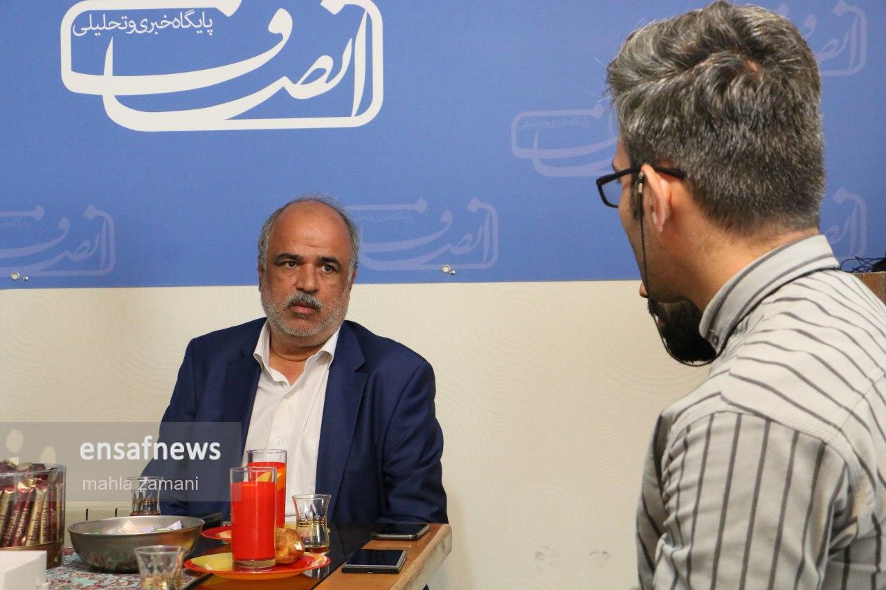 خراسانی در مصاحبه با انصاف نیوز در موارد متعددی به بحث و اظهار نظر با خبرنگاران پرداخت. او در این گفتوگو انتقادات به حکم 200 هزار تومانی پروندهی سعید مرتضوی را شیطنت رسانهای دانست. حرکات اخیر محمود احمدی نژاد را جو سازی تلقی کرد. از لزوم حمایت از رسانهها و نگاه دیگر به آنها گفت و دربارهی برخی انتقادات به قوه قضاییه پاسخ داد.