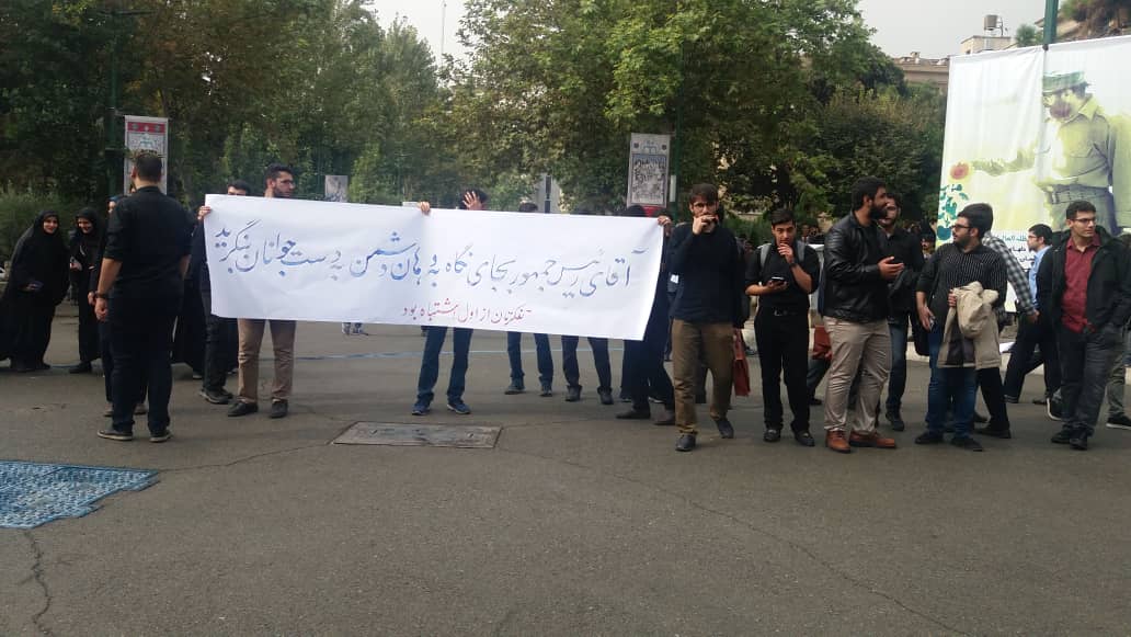 تجمع در دانشگاه تهران همزمان با حضور رییس جمهور [تکمیلی]
