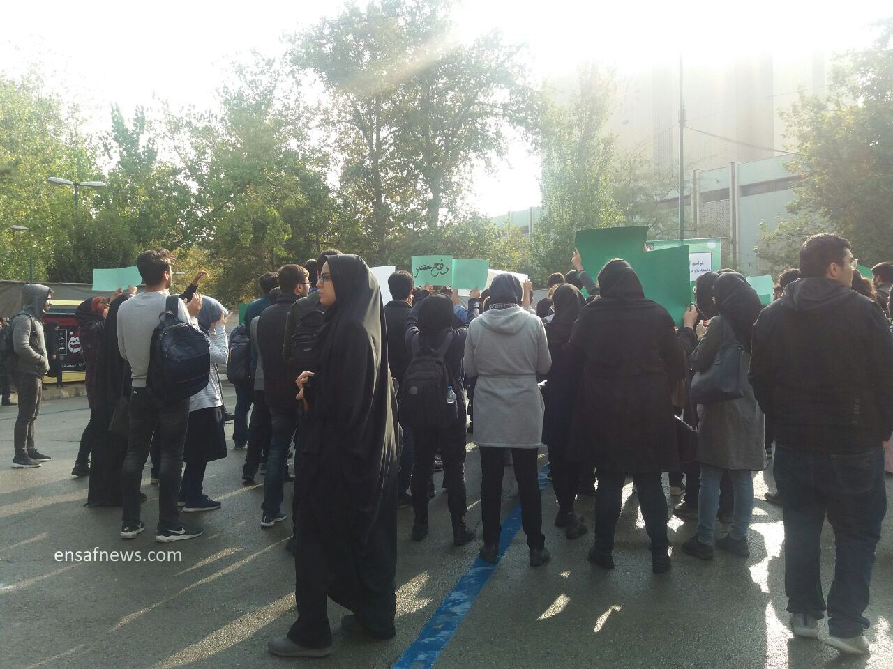 به گزارش خبرنگار انصاف نیوز، تعداد دانشجویان تجمع کننده حدود 50 تا 100 نفر است و شعارهای آنها بیشتر جنبه‌ی انتقادی دارد از جمله: