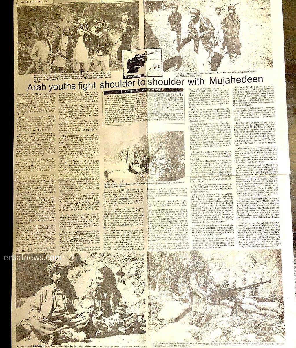 «اسناد جمال خاشقچی آن مردی كه آر پي جي را در عکس بالا حمل كرده در گروه طالبان همان خاشقچي مظلوم است!؟ بله- اين آقا زمانی اسرا را با كارد ذبح ميكرد. اينكار را در همکاری با رسول سياف يكی از رهبران كه سعودی حمايتش ميكرد و سلفيها و وهابيت را در برخی از جاهای افغانستان ترويج ميكرد انجام ميداد. اينها يكبار ٦٠ دختر جوان را در استان كنر افغانستان اسير گرفته و ميخواستند همه را به عقد خويش در آرند. ٥٠ نفر از اين دختران جوان موفق به فرار شدند و همه خود را در رودخانه كنر پرتاپ كردند و برای هميشه كسی آثاری از آنها را نديد. 😮 دنيا دار مكافات است، از هر دست دادى از همان دست ميگيرى! عكس را بزرگ كنيد با علامت زيرعكس انگليسى نامش نوشته شده 👍 واقعا دنیا دار مکافات است».
