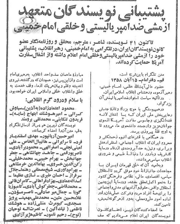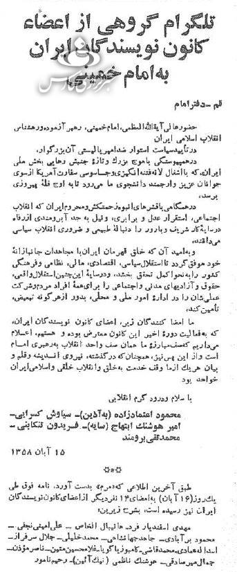 نام نویسندگان و شاعران و روشنفکران و البته متمایل به چپ را در پای نامه بخوانید همگی پخته و بالغ و رسیده بودند ایضا نامهای دیگر را میتوانید سرچ کنید و دربیاورید که از این تصرف و تسخیر حمایت کردند و اکنون مواضعی دیگر دارند دولت بازرگان اما مخالف بود و بهای مخالفتش را پرداخت و چندی بعد هم استعفا داد و رفت و خانه نشین شد. روایت شده است به مهندس بازرگان گفتند تمام روشنفکران و اهل قلم ایران از این حادثه حمایت کردند تو چرا مخالفت کردی که سرنگون شوی و از قدرت خارج شوی او گفت هر که باشند باشند بی عقلی کردند».