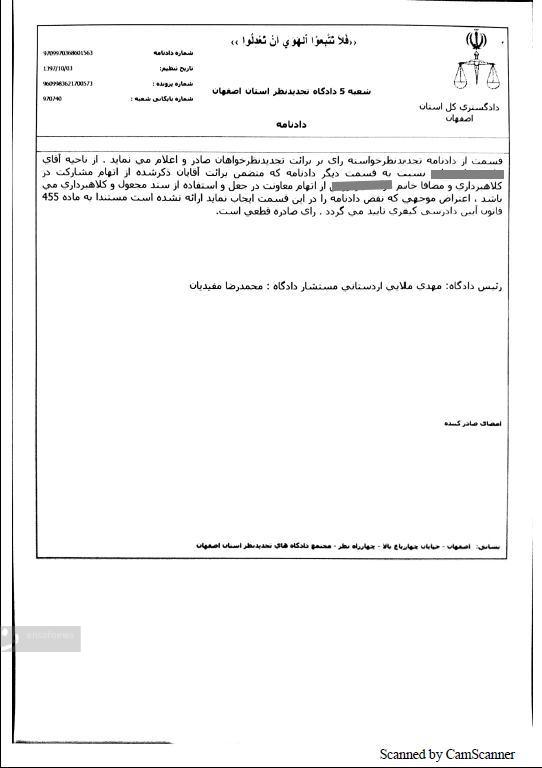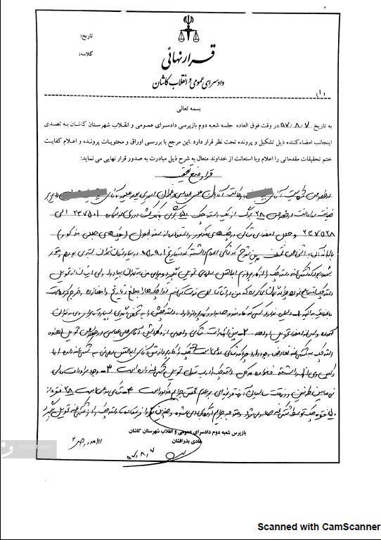 [این قرار مربوط به یکی از شکایتهای م.س بوده و هنوز قطعی نشده است]