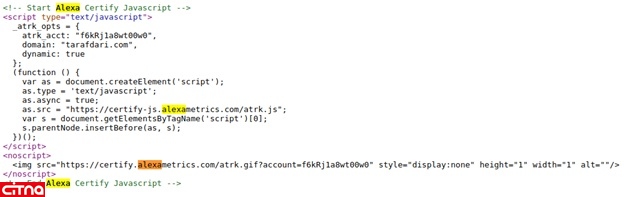 تصویر زیر مربوط به قرار گرفتن کد الکسا در سایت ها است: