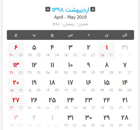- ۱۶ خرداد تعطیل به مناسبت عید سعید فطر [ ٢ شوال ]