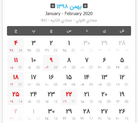 - ۱۱ دی جشن آغاز سال نو میلادی [ 1 January ]