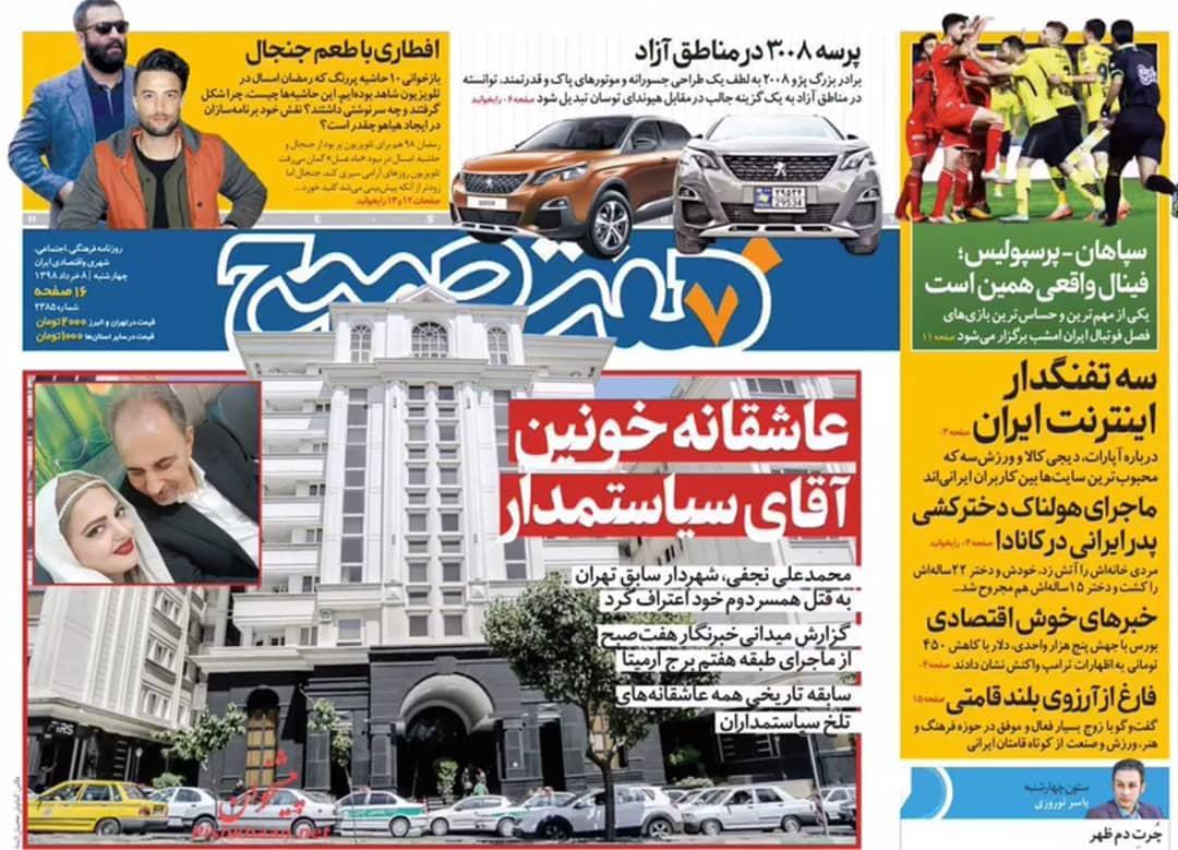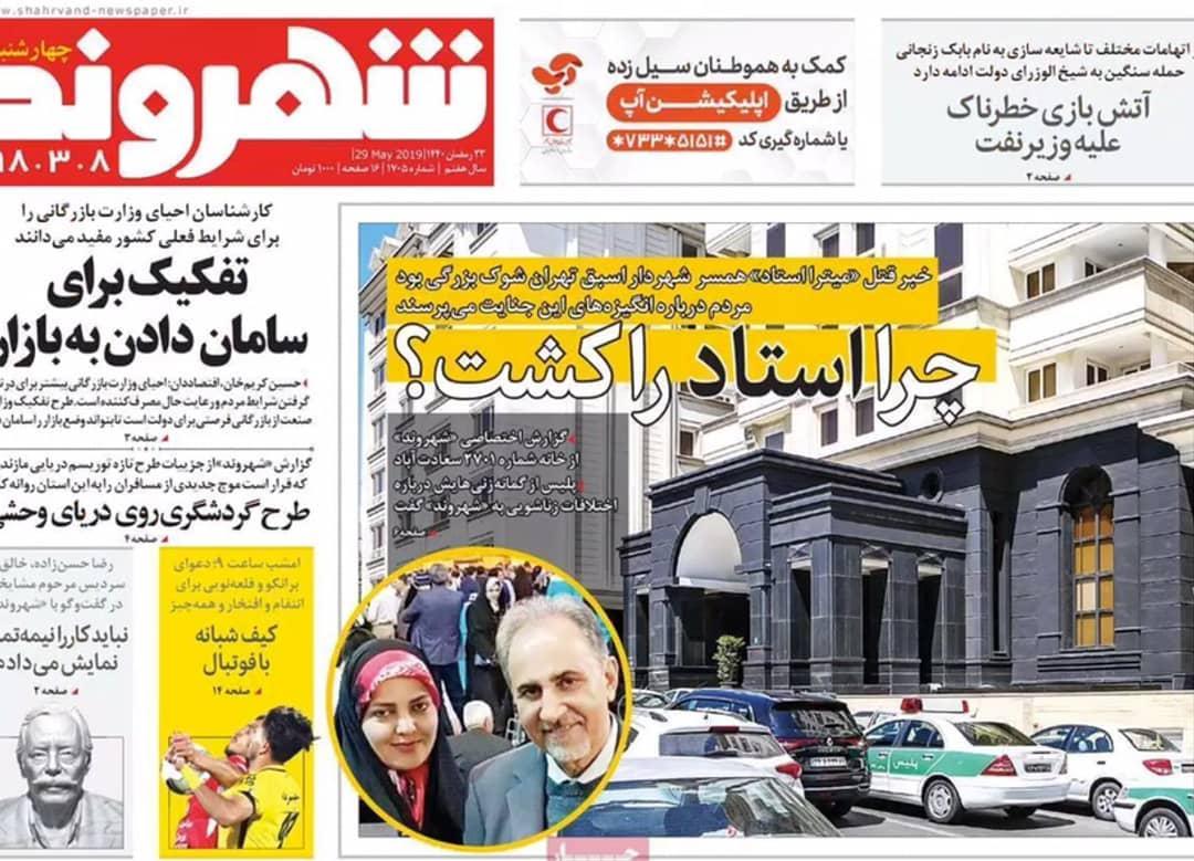 این عکس جلد سازندگی نیست . عکسهای جلد روزنامههای تهران و نیز صفحه اینستاگرام شبکه بیبیسی فارسی است که عکسهای منتشر شدهی همسر متوفی دکتر محمد علی نجفی را در صفحه اول خود بازنشر کرده اند.