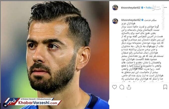 خسرو حیدری پس از خداحافظی تلویحی پژمان منتظری از استقلال متنی را در حمایت از او در صفحهی اینستاگرامنش منتشر کرده بود: