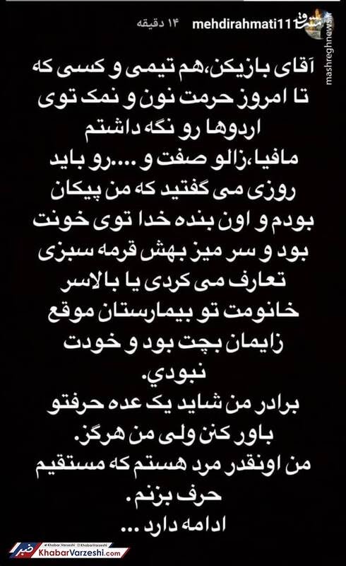 مهدی رحمتی در یادداشتی در اینستاگرام در واکنش به متن خسرو حیدری نوشته بود: