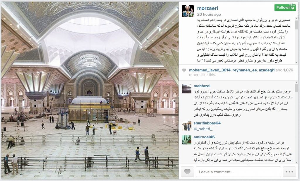 همشهری عزیز و بزرگوار ما جناب آقای انصاری در پاسخ اعتراضات به ساخت فضای جدید مرقد امام دو نکته مطرح فرمودهاند که متأسفانه مشکل را بیشتر کرده است.