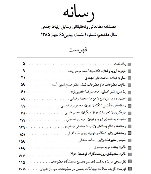 فصلنامه رسانه، سفرهای مطبوعاتی شماره ۶۵، مقاله تجربه اروپا و لبنان ،دکتر سید احمد موسی زاده