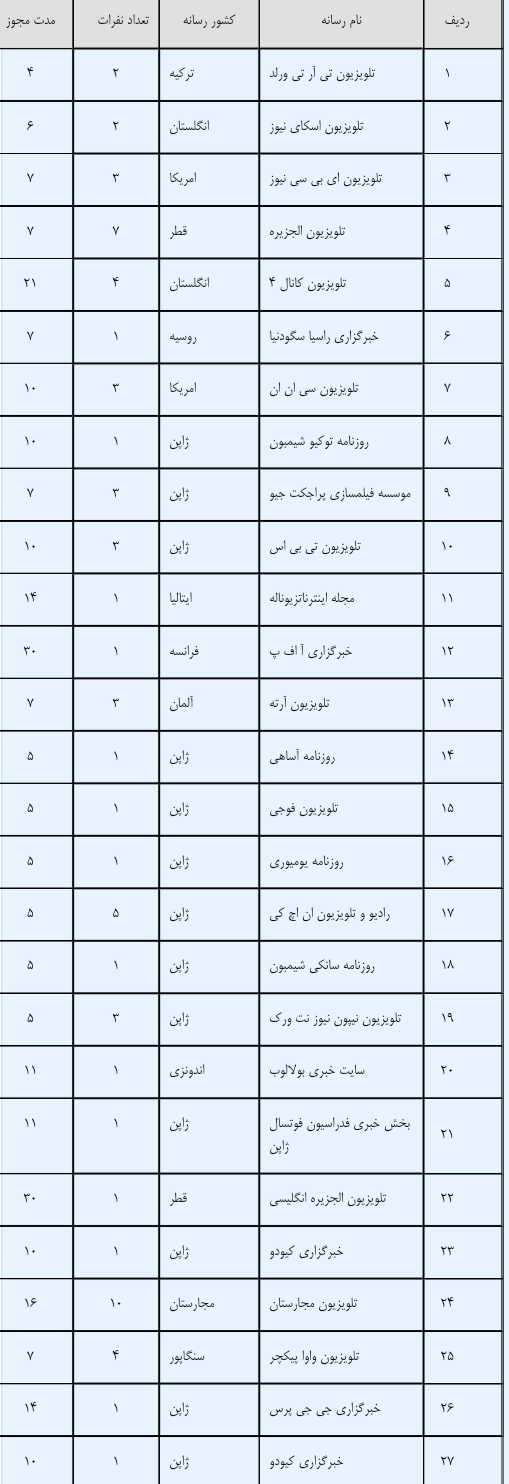 فهرست خبرنگاران خارجی که در خرداد98 روادید مطبوعاتی دریافت کردند