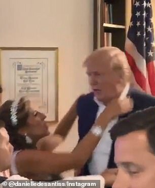 به گزارش ایسنا، به نوشته روزنامه دیلی میل، فیلم‌هایی از حضور دونالد ترامپ، رئیس جمهوری آمریکا در این مراسم عروسی در رسانه‌های اجتماعی منتشر شد که نشان می‌داد ترامپ به سمت مهمان‌ها رفته و عروس و داماد هم به او ملحق شدند. شرکت کنندگان در این مراسم عروسی سپس از شدت شعف و شور شعار میهن پرستانه “آمریکا، آمریکا” سر دادند.