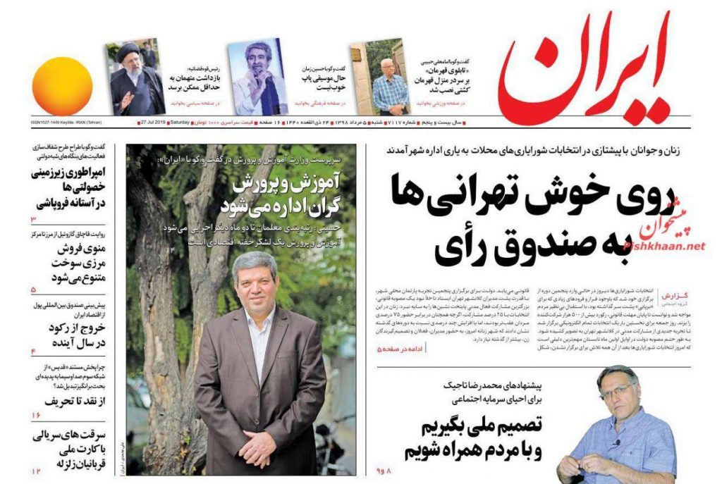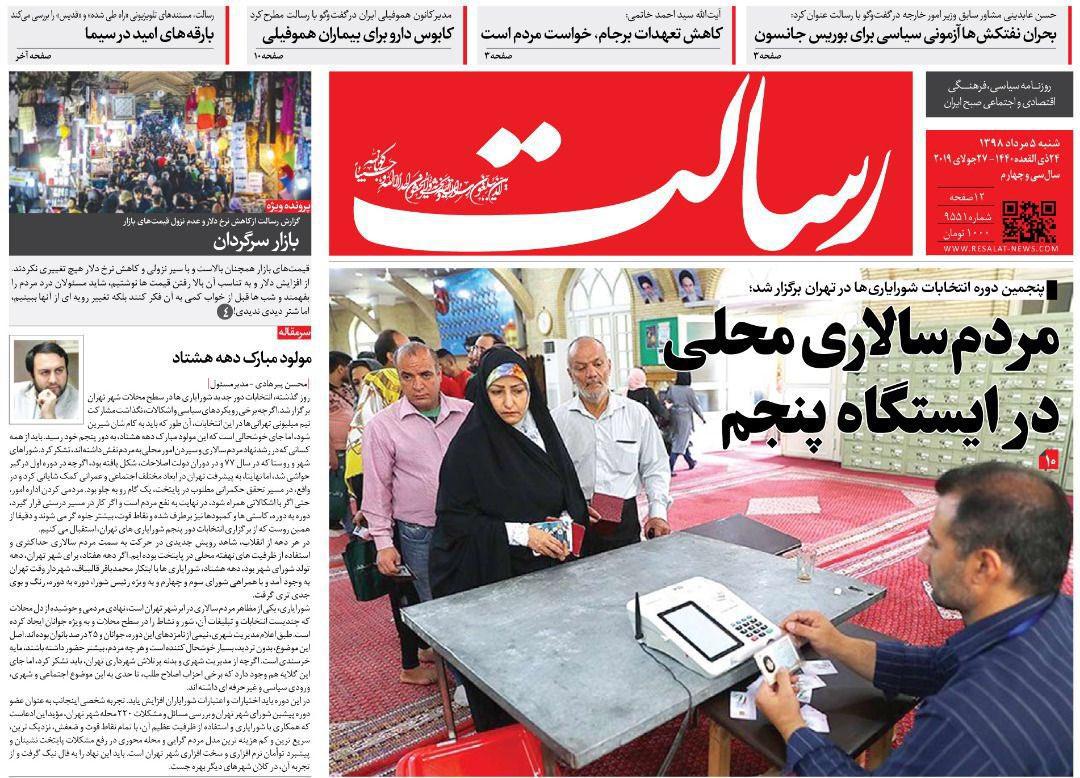 تعدادی از روزنامه‌ها انتخابات شورایاری‌ها که روز جمعه در تهران برگزار شد را در صفحه‌ی اول خود بازتاب دادند.