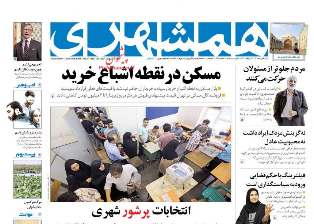بازتاب انتخابات شورایاری‌ها در صفحه‌ی اول تعدادی از روزنامه‌ها