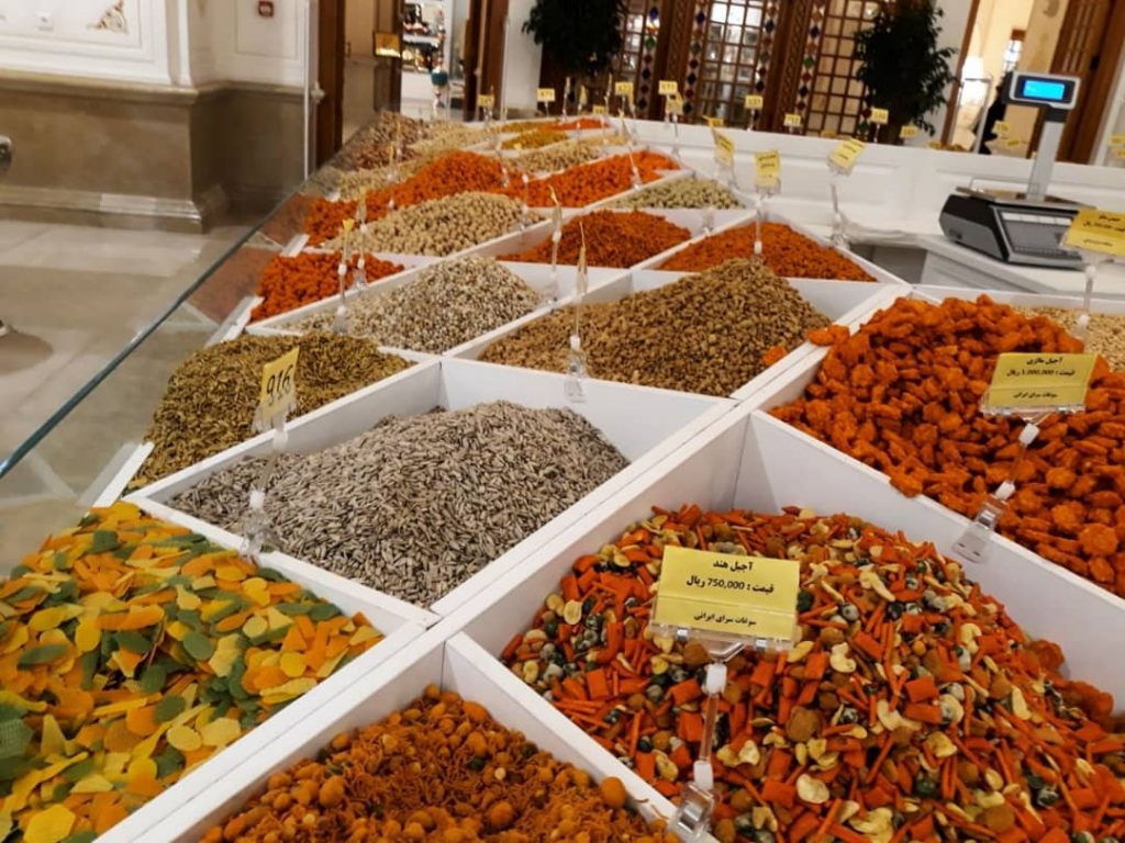 بخش سوغاتسرای ایرانمال مخصوص خرید آجیل و شیرینی است، قیمت اجناس در این بخش هم در مقایسه با فروشگاههای دیگر گران است، اما افرادی همچنان در حال خرید دیده میشوند، از زن میانسالی که در حال خرید است نظرش را پرسیدیم و گفت: «بار دوم است که برای خرید به اینجا میآیم و قیمتها نسبت به بازار بیشتر است اما خب کیفیت اجناسش عالی است.»