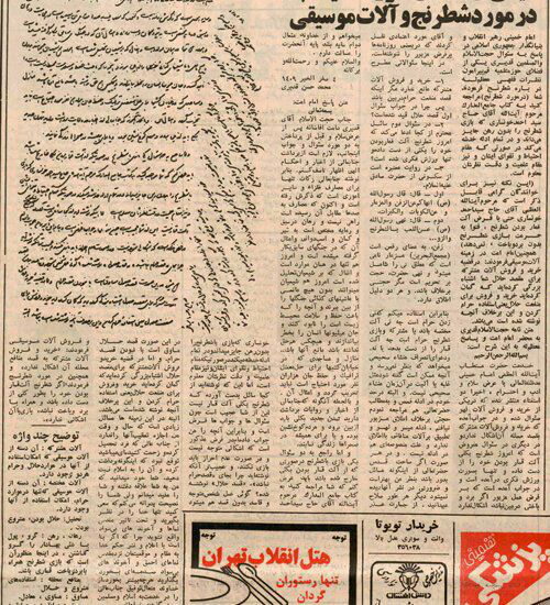 دفاع امام خمینی از فتوای آزادی شطرنج و آلات موسیقی