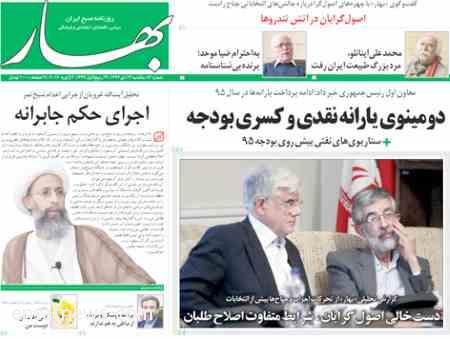 حالا خبر ايسنا درباره نحوه توقيف روزنامه بهار در شب شنبه گذشته را هم بخوانيد: «مدير مسئول بهار درباره اعلام توقیف ناگهانی روزنامه خاطرنشان کرد: شب گذشته حدود ساعت 10 شب در حالی که روزنامه صبح امروز (13 دی ماه) چاپ شده بود، از دادستانی به چاپخانه فکس شد که به حکم شعبه 12 دادسرای فرهنگ و رسانه، روزنامه «بهار» حق خروج از چاپخانه را ندارد؛ پس از تماسی که با معاون دادستان گرفتم، ایشان مطرح کردند که حکم توقیف روزنامه صادر شده است و شما حق ندارید روزنامه را منتشر کنید؛ این در حالی بود که بیش از 70 درصد تیراژ روزنامه را چاپ کرده بودیم؛ در حال حاضر تمام نسخ چاپ شده ما به عنوان باطله باید خمیر شوند.»