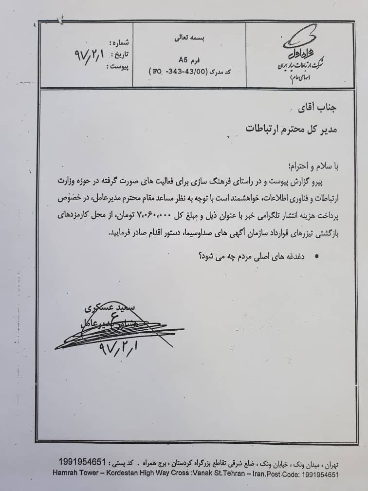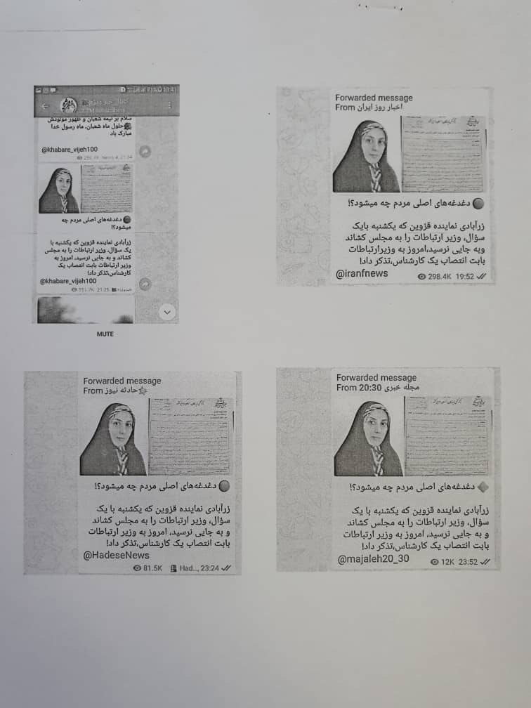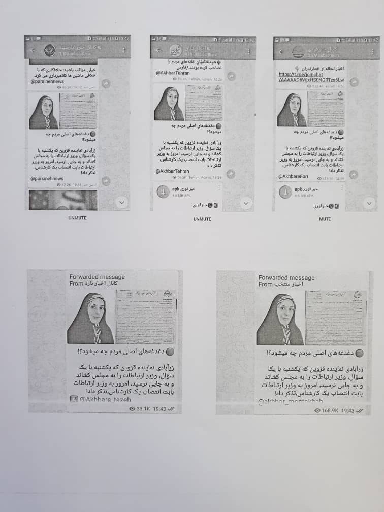 به دنبال واکنش‌های تند به نطق روز سه‌شنبه‌ی حمیده زرآبادی نماینده‌ی مجلس در انتقاد به محمدجواد آذری جهرمی وزیر ارتباطات؛ روزنامه‌ی فرهیختگان اسنادی از ارتباط مالی چند کانال تلگرامی پوشش دهنده‌ی واکنش‌ها به این نطق را با قرارداد مالی «همراه اول» منتشر کرد که این اسناد با کمی وضوح بیشتر در پی می‌آید: