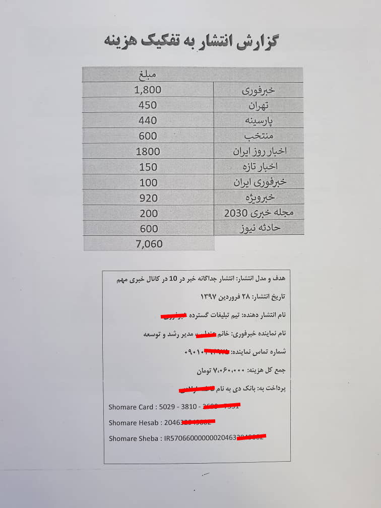اسناد ارتباط مالی چند کانال تلگرامی منتقد حمیده زرآبادی