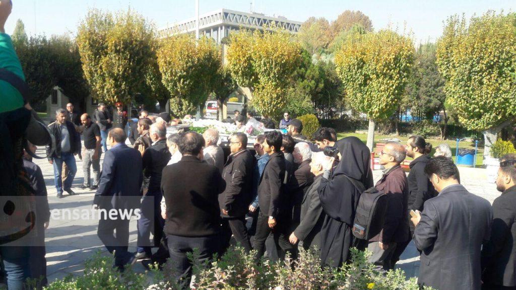 آیین وداع و تشییع پیکر مجید اوجی تهیه‌کننده صداو سیما مقابل مسجد بلال صداوسیما برگزار شد.