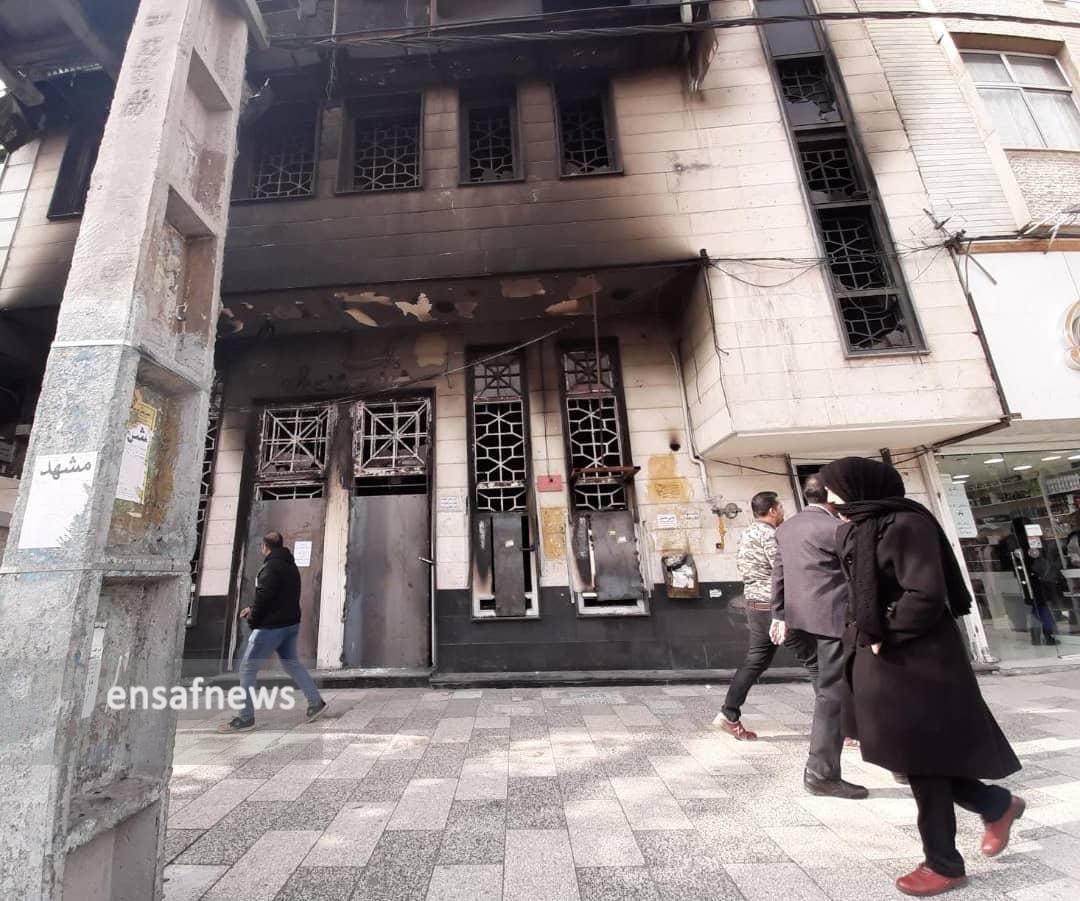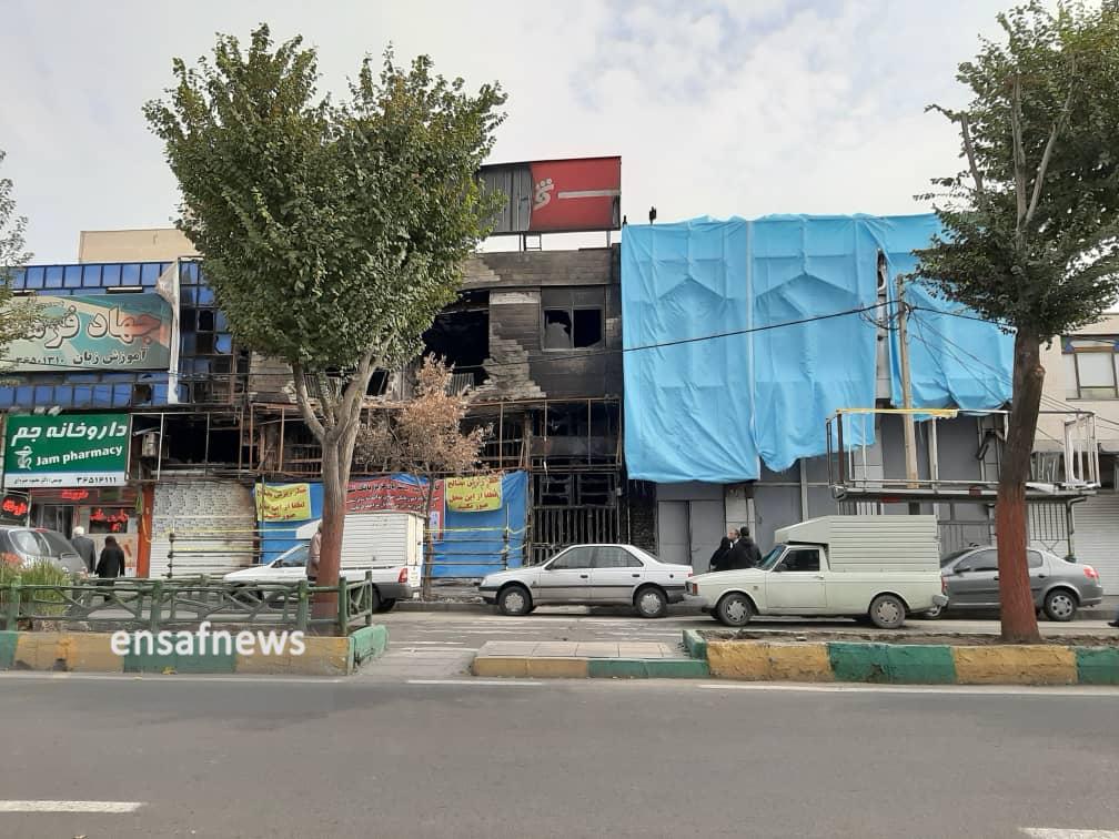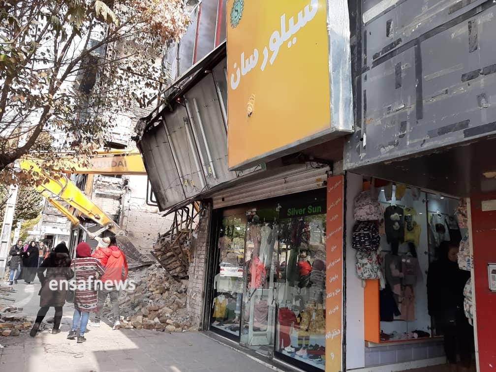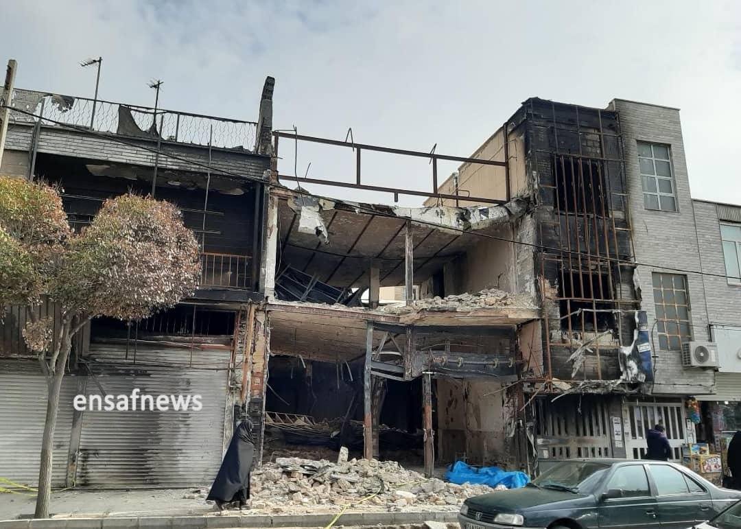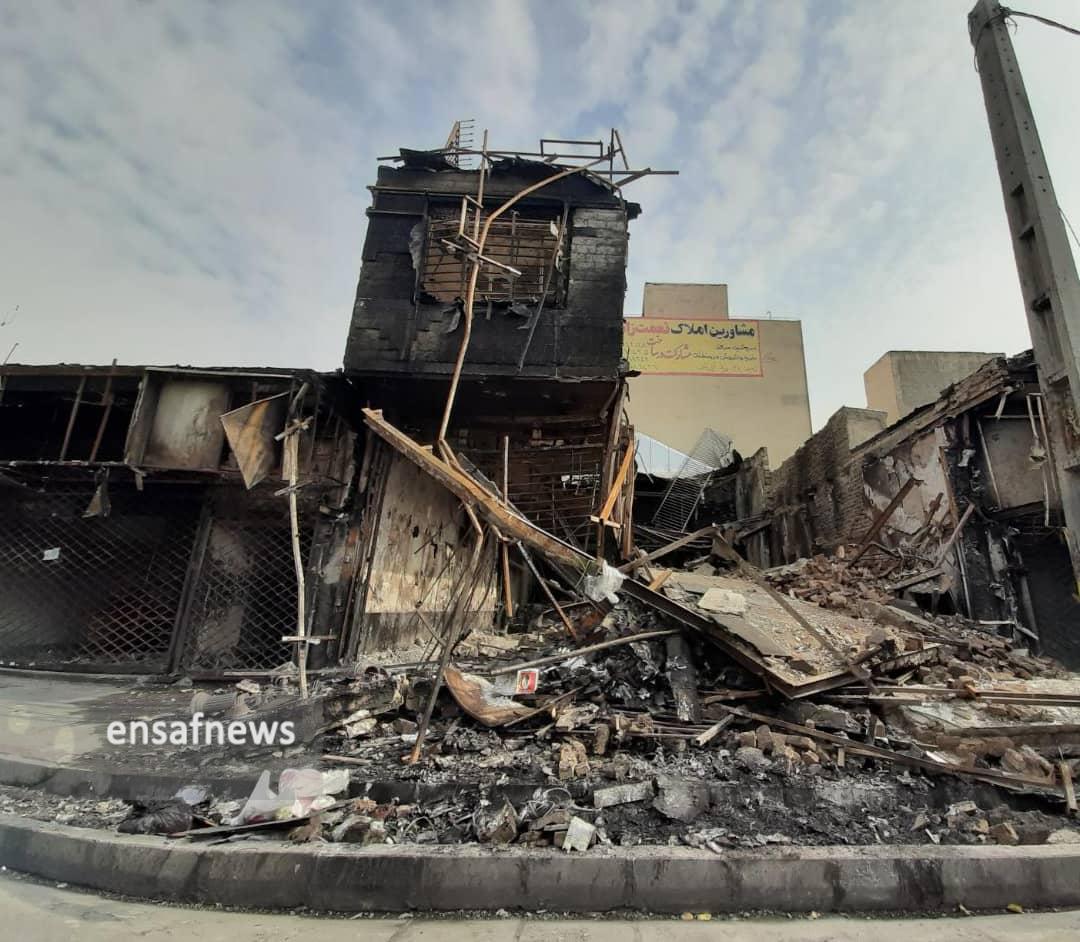 قدم به قدم که پیش میروم حجم خسارتها در حال افزایش است و فقط محدودهی کوچکی عاری از تخریب بوده و گویی قدرت خشم مردم در روزهای قبل خود را در هیبت آتش گرفتن بانکی نمایان کرده که حالا بوی در و دیوار سوختهی آن همهی فضا را پر کرده، وارد مغازهی دختر جوانی میشوم که فروشندهی لباس کودک است و دیوار به دیوار بانک فرو ریختهی «مهر اقتصاد» است، در مورد امنیت مغازه میپرسم و با خنده میگوید «دیوارای مغازه خیلی سست شده، به اندازهای که به کارگرا گفتیم موقع خاک برداری خیلی مراقب باشن، ولی اوضاع خوب نیست، تابلو مغازه ما همون روز آتیش گرفت، به مسوولای بانک گفتیم خسارت بدن، گفتن از اغتشاشگرا بگیرید، مغازهی اون طرف بانک هم یه کت و شلوار فروشی بود که آتیش گرفت.»