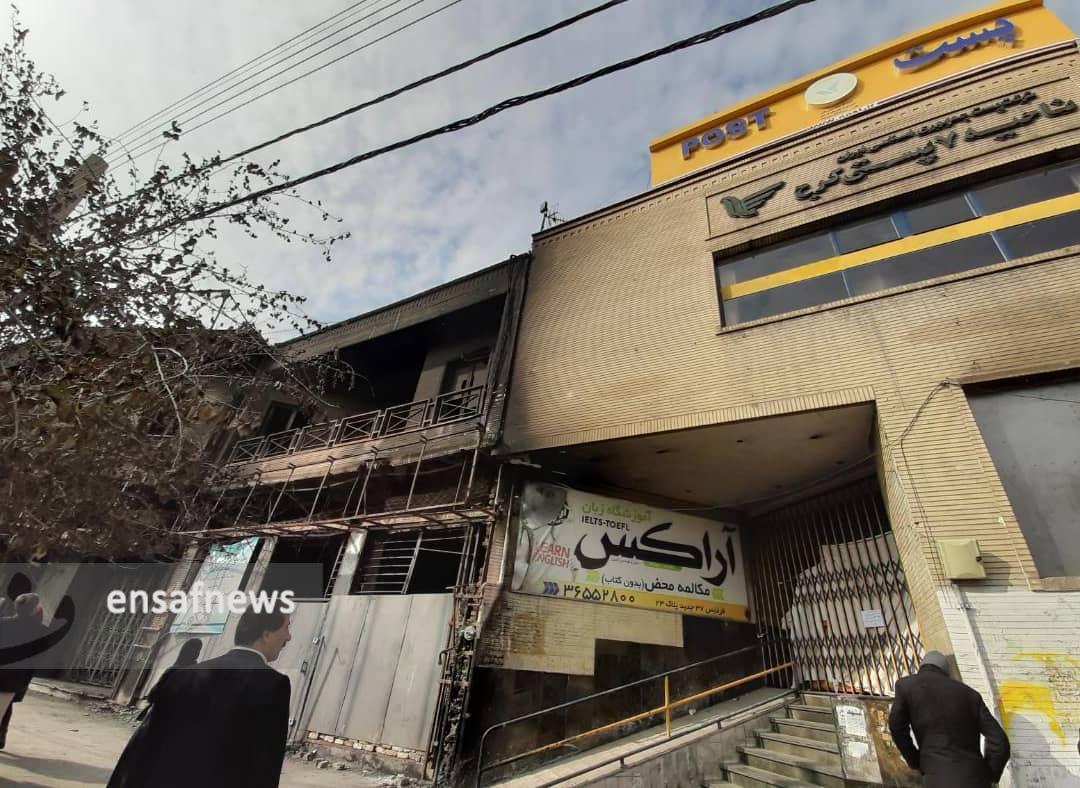 کمی جلوتر آتشسوزی بانک سرمایه باعث سوختگی دو مغازه و بخشی از یک خانه شده است، فروشندهی سوپرمارکت در کوچهی کناری در مورد این حادثه میگوید: «دو تا مغازه کنار بانک بود که هردوتا از بین رفته، یکی گوشی فروش بود و یکی دیگه لباس فروش بود، تا جایی که میدونم صاحب مغازهها از شهرداری و استانداری پیگیری کردن اما خب به هیچ جا نرسیده، بنظرم چهار یا پنچ سال طول میکشه تا به پولشون برسن.»