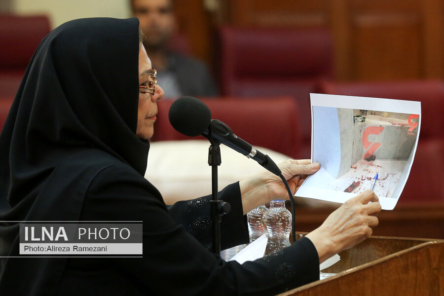 ماهرخ کیان زاده گفت: ۴۵ سال است که در این کار هستنم و شاید بیش از ۱۰۰۰ جسد تیر خورده را با سلاح‌های مختلف دیدم حتی سلاح های مشابهی که ممکن است آثارشان به دلایل مختلف متفاوت باشد. در خصوص اصراری که دارند و می‌گویند گلوله خارج شده از دست به وان برخورد کرده باید بگویم وان سوراخ مدون حداکثر میلیمتری دارد هیچ وقت گلوله‌ای که از دست خارج می شود نمی تواند این سوراخ را ایجاد کند و باید موقع ورود به وان سوراخ بزرگ تری به جا می گذاشت.