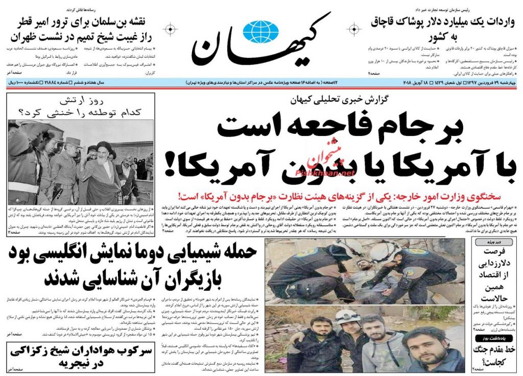 این روزنامه در فروردین ماه ۹۷ هم با تیتر «برجام فاجعه است با آمریکا یا بدون آمریکا!» نوشت: