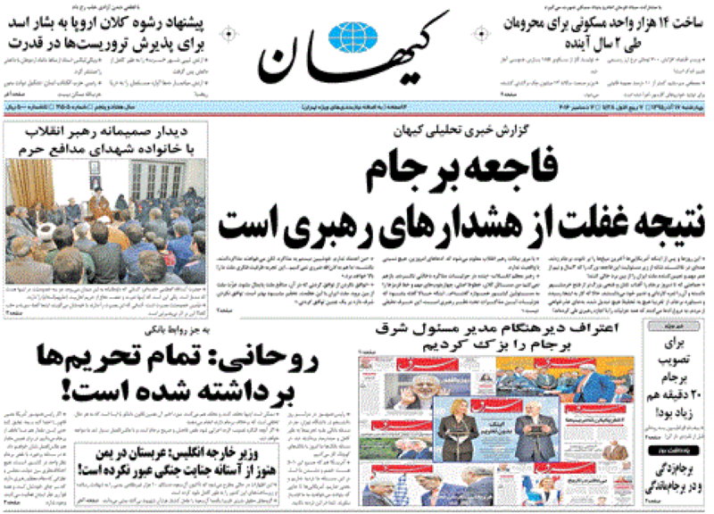 کیهان، آذرماه ۹۵ با تیتر «فاجعه برجام نتیجه غفلت از هشدارهای رهبری است» نوشت:
