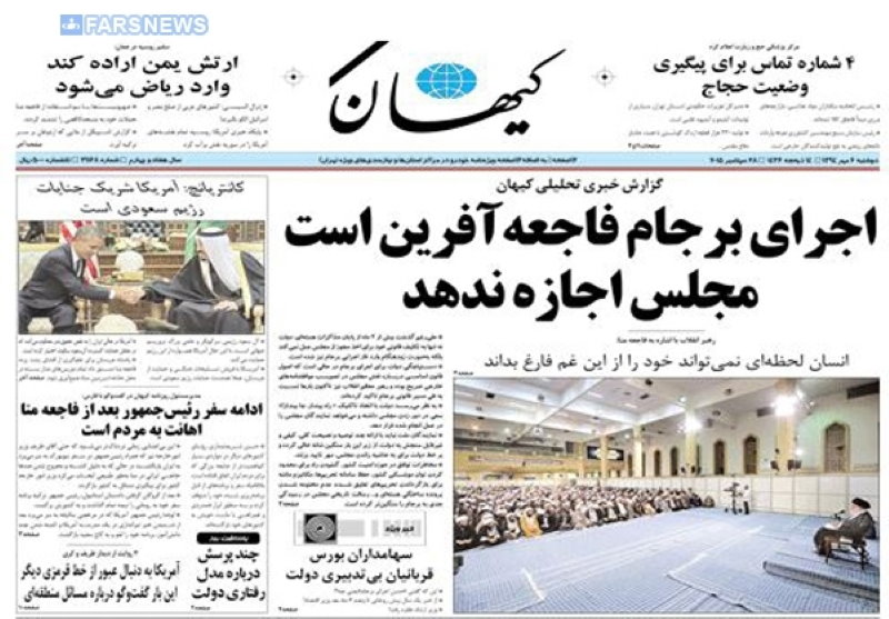 کیهان، مهرماه ۹۴ با تیتر «اجرای برجام فاجعه آفرین است مجلس اجازه ندهد» نوشت: