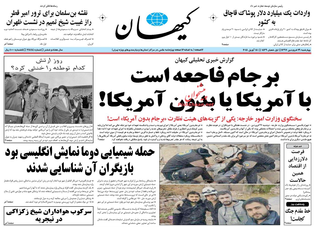 این روزنامه در فروردین ماه ۹۷ هم با تیتر «برجام فاجعه است با آمریکا یا بدون آمریکا!» نوشت: