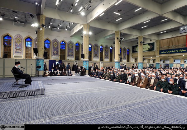 در پایان این دیدار، نماز مغرب و عشاء به امامت رهبر انقلاب اسلامی اقامه شد.