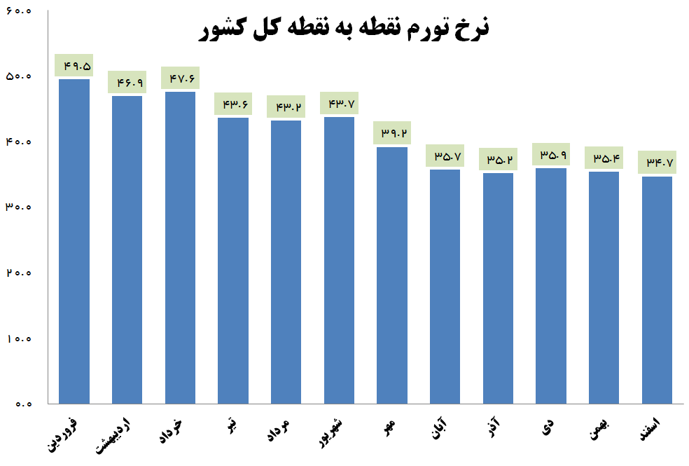 «نرخ تورم نقطه به نقطه که در فروردین ۱۴۰۰ به نزدیکی ۵۰ درصد رسیده بود با تغییر دولت در اسفند گذشته به کمتر از ۳۵ درصد کاهش یافت.»