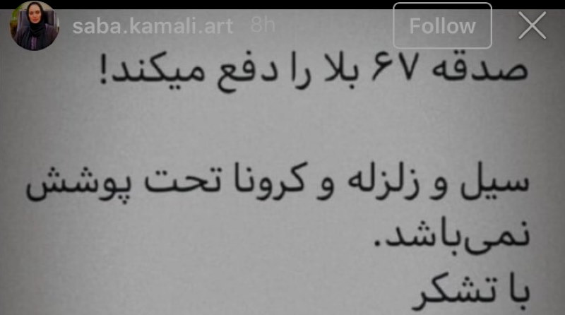 نگار: یه بار دهن کثیفش به توهین امام حسین باز شد سکوت کردید انگار نه انگار و الان دوباره… تا کی قراره اینا اینقدر راحت تراوشات مغز گندیدشون رو بریزن بیرون و هیچکس کاری به کارشون نداشته باشه؟! #صبا_کمالی