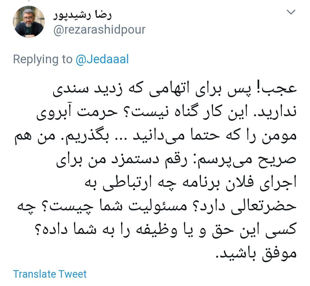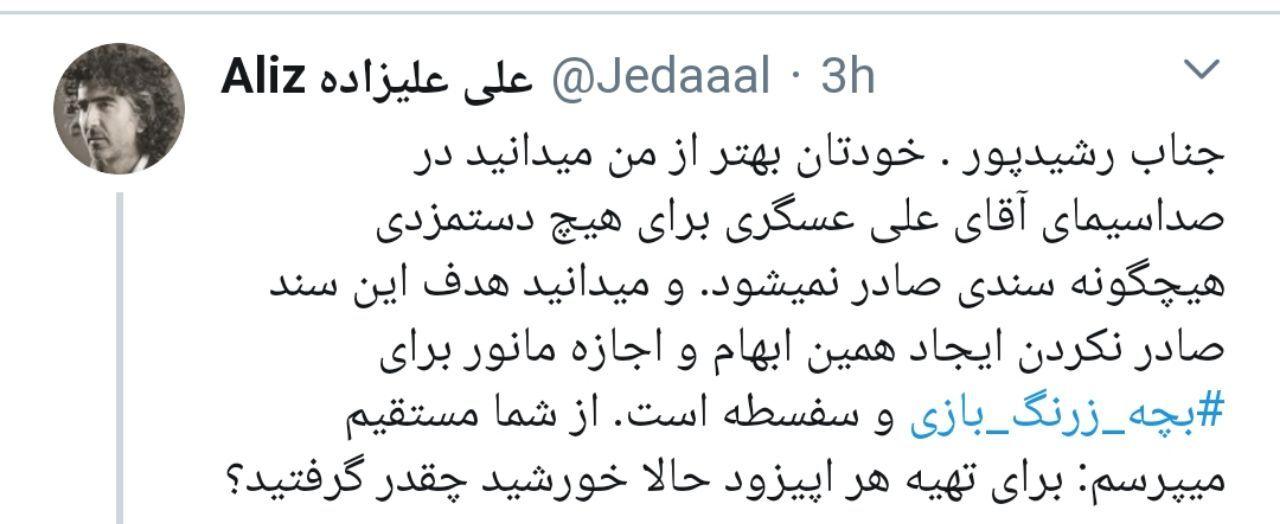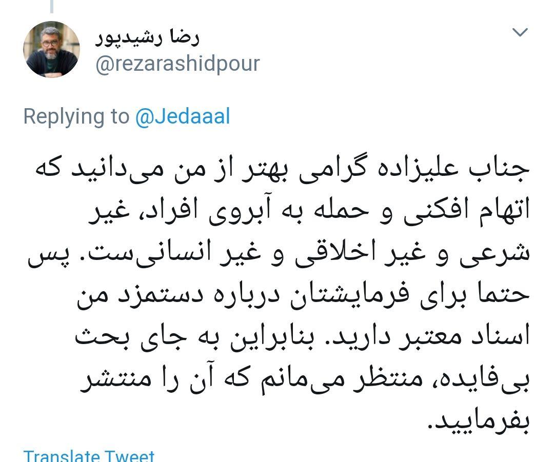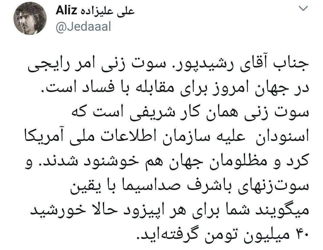 جدال توییتری علی علیزاده و رضا رشیدپور