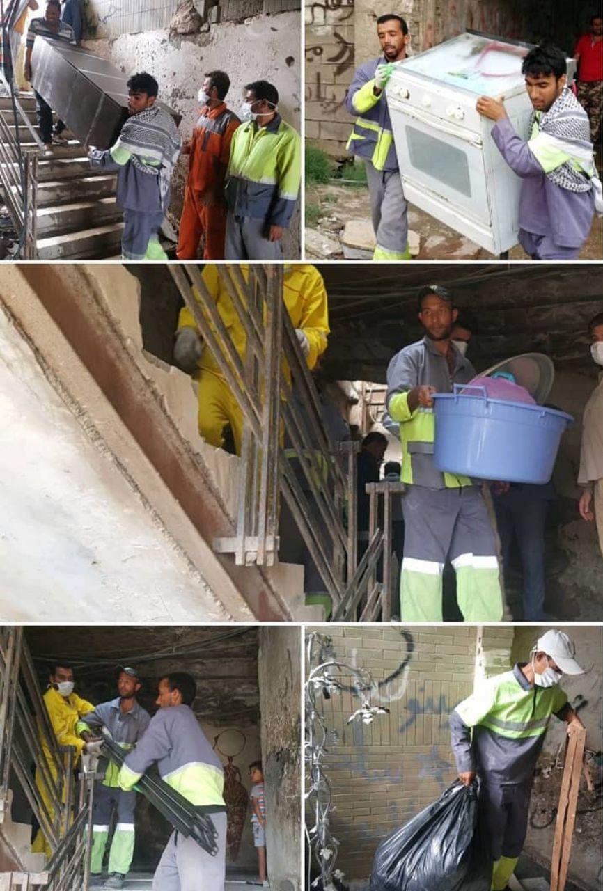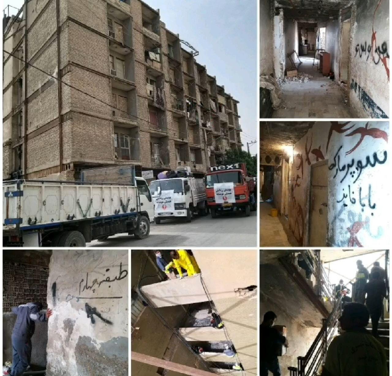 ۴۶خانوار کم برخوردار خرمشهری که سالهاست در ساختمان شش طبقه ی مخروبهی بازمانده از جنگ با عمری نزدیک به چهل سال در بدترین وضعیت بهداشتی و معیشتی زندگی میکردند امروز با حضور فرماندار، شهردار، معاون سازمان منطقه آزاد اروند و جمعی دیگر از مسولین و نهادهای کشوری و انتظامی از ساختمان تخلیه شدند.