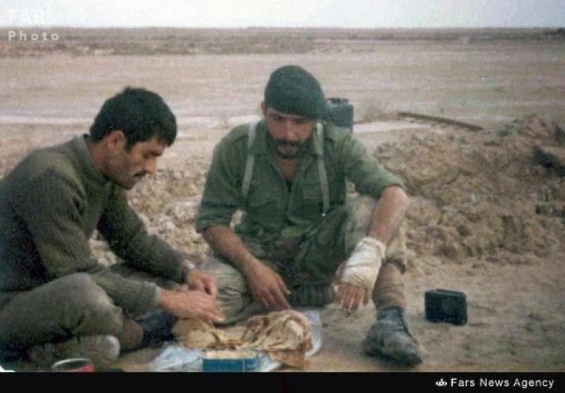 این را بگویم که آنجا کسی نبود که بگوید خسته شدید و بیایید استراحت، در ۲۴ ساعت یک وعده غذا بیشتر نمیرسید که آنهم مردم فداکارخرمشهر و شرکت نفت و آشپزخانهی شرکت نفت برایمان غذا میآوردند که سرپایی و با دست خورده میشد؛ یا برنجی تهیه میکردند و در نان میپیچیدیم و میخوردیم.اینها واقعیات آن روزهاست.»