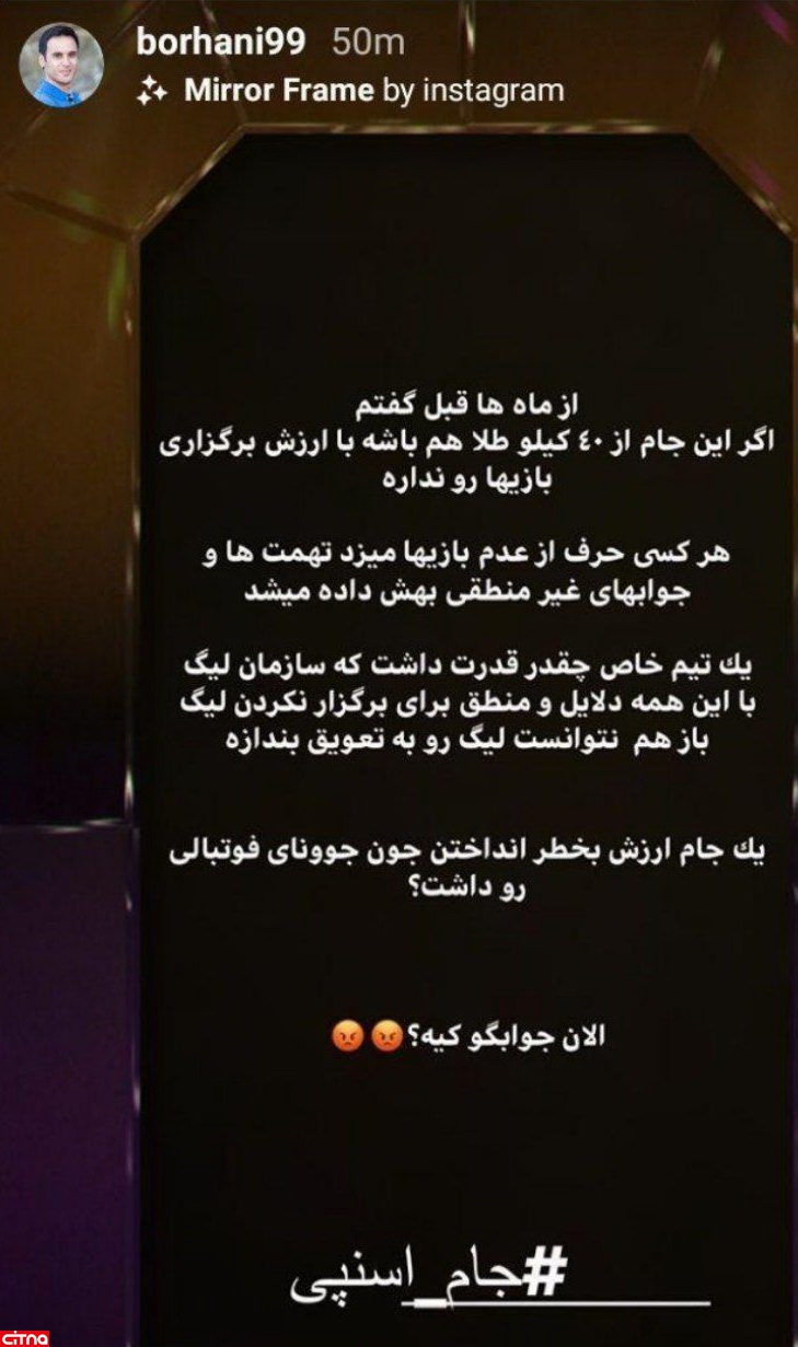 استوری جنجالی آرش برهانی علیه وزیر ورزش
