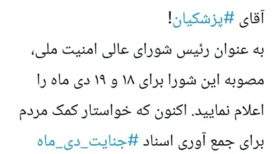 پزشکیان تاکید کرد: براساس اطلاعات به دست آمده یکی از افراد دستگیر شده، یک الی دو ماهی است که در زندان به سر میبرد در حالیکه ممنوع الملاقات بوده و اتهام وی هنوز مشخص نیست.