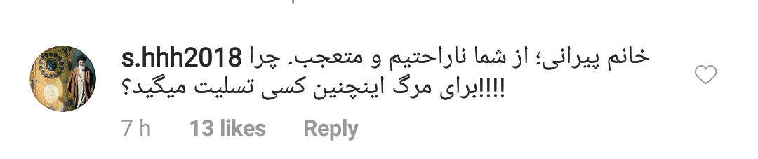 به گزارش انصاف نیوز خانم پیرانی در صفحهی اینستاگرام خود با انتشار این عکس نوشته بود: