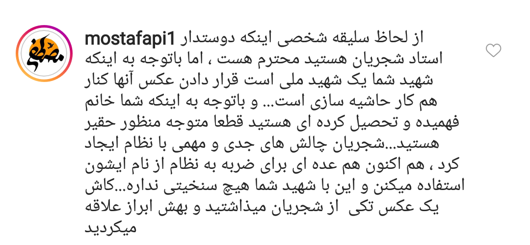 کامنتهای عجیب یادداشت همسر شهید رضایینژاد برای شجریان