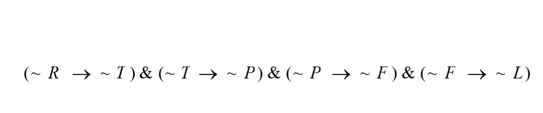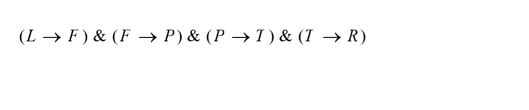 که در این استنتاج، L لیبرالیسم و F آزادی بیان و P پلورالیسم و T رواداری و R احترام متقابل به عقاید و ادیان است.
