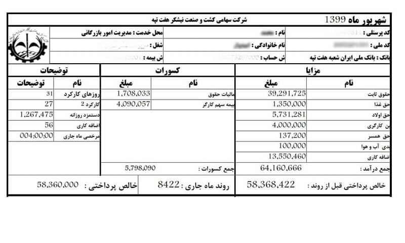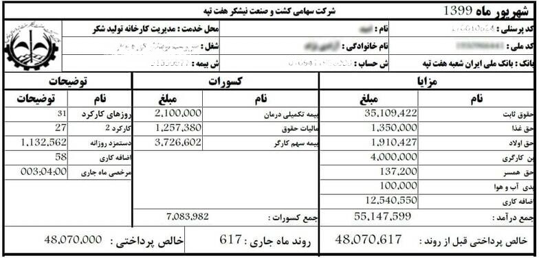 نمونههایی از فیشهای حقوقی پرداختی شهریور ماه کارگران