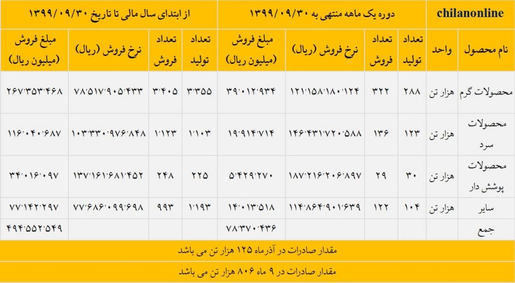 شرکت فولاد مبارکه اصفهان در آذر ماه سال جاری معادل ۷۸۳۷ میلیارد تومان از محصولات خود را به فروش رساند که نسبت به دوره ۱ ماهه مشابه سال قبل افزایش ۱۶۷ درصدی را نشان میدهد. نماد بورسی فولاد، بالاترین درآمد فروش ماهانه در طول تاریخ خود را در آذرماه سال جاری ثبت کرد.